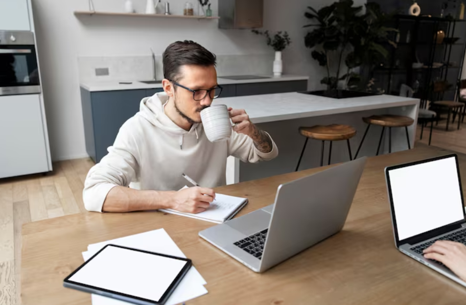 (Foto: https://www.freepik.com/free-photo/man-working-from-home-desk-while-having-drink_21076515.htm)